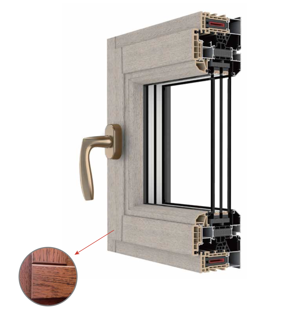 窗框内饰,带有集成装饰槽设计。